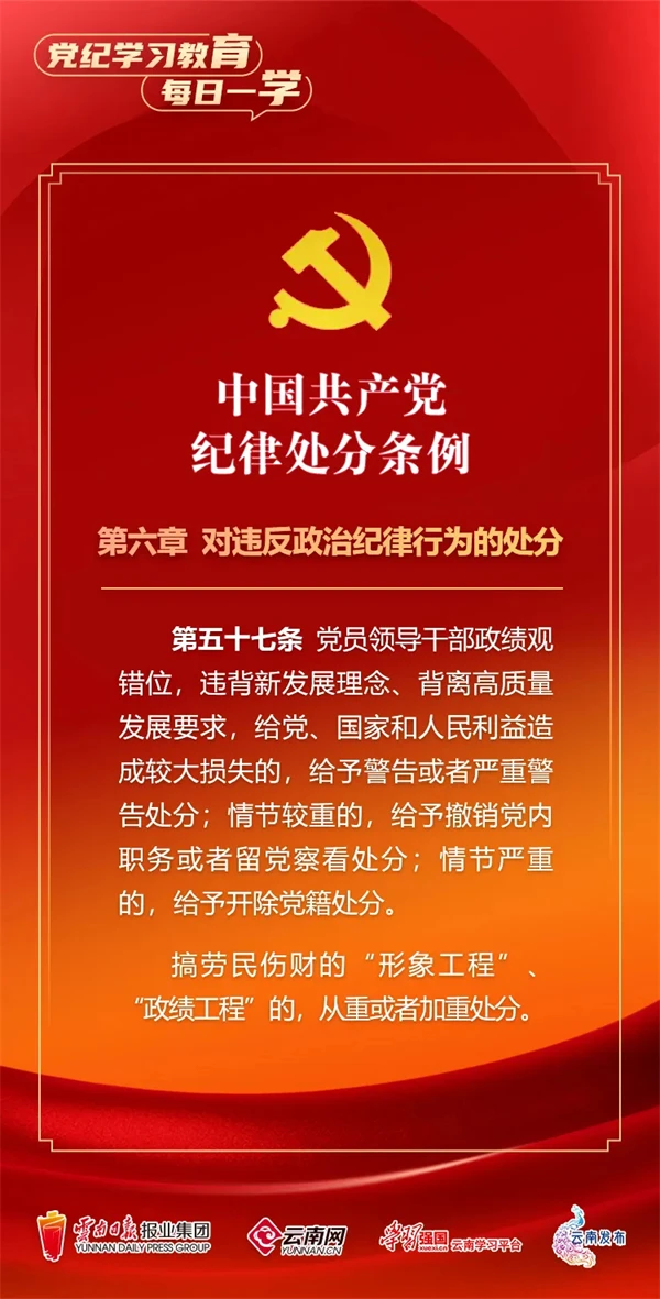 為深入學習貫徹落實習近平總書記關于黨紀學習教育的重要講話和重要指示精神,便于全省各級黨組織和廣大黨員、干部深入學習貫徹修訂后的《中國共產黨紀律處分條例》,云南網(wǎng)聯(lián)合“學習強國”云南學習平臺、云南發(fā)布共同策劃推出“黨紀學習教育•每日一學”專欄,營造全員參與、人人學紀的濃厚氛圍。今天,我們推出第?期,一起來學習。