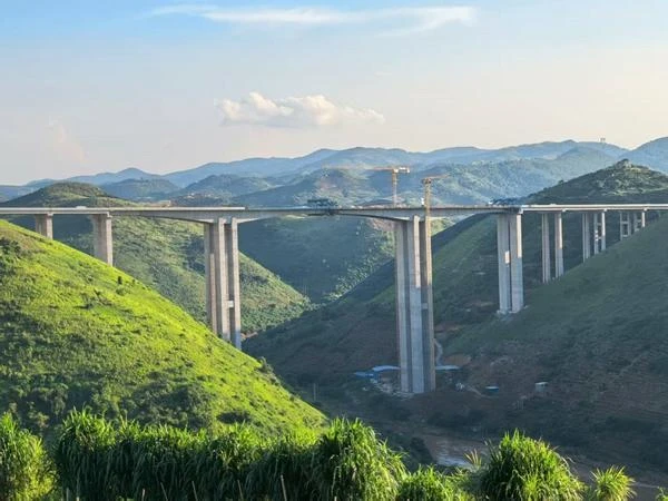 南盤江特大橋橋長816米,橋高156米,主橋?yàn)轭A(yù)應(yīng)力混凝土連續(xù)剛構(gòu)橋,采用懸臂澆筑工藝,引橋?yàn)轭A(yù)應(yīng)力混凝土連續(xù)T梁橋,采用先簡支后連續(xù)體系。為確保連續(xù)剛構(gòu)現(xiàn)澆梁施工質(zhì)量與安全,彌玉高速項(xiàng)目公司成立工作專班,對掛籃安裝、鋼筋綁扎等關(guān)鍵工序?qū)嵤┤^程管控。針對現(xiàn)場施工難點(diǎn),及時組織專題會議研究討論,持續(xù)優(yōu)化施工組織和資源配置。通過嚴(yán)格執(zhí)行標(biāo)準(zhǔn)化施工管理,落實(shí)現(xiàn)場安全與質(zhì)量責(zé)任,并加強(qiáng)橋梁標(biāo)高、溫度及線型監(jiān)測,最終保障了左幅9號墩的順利合龍。