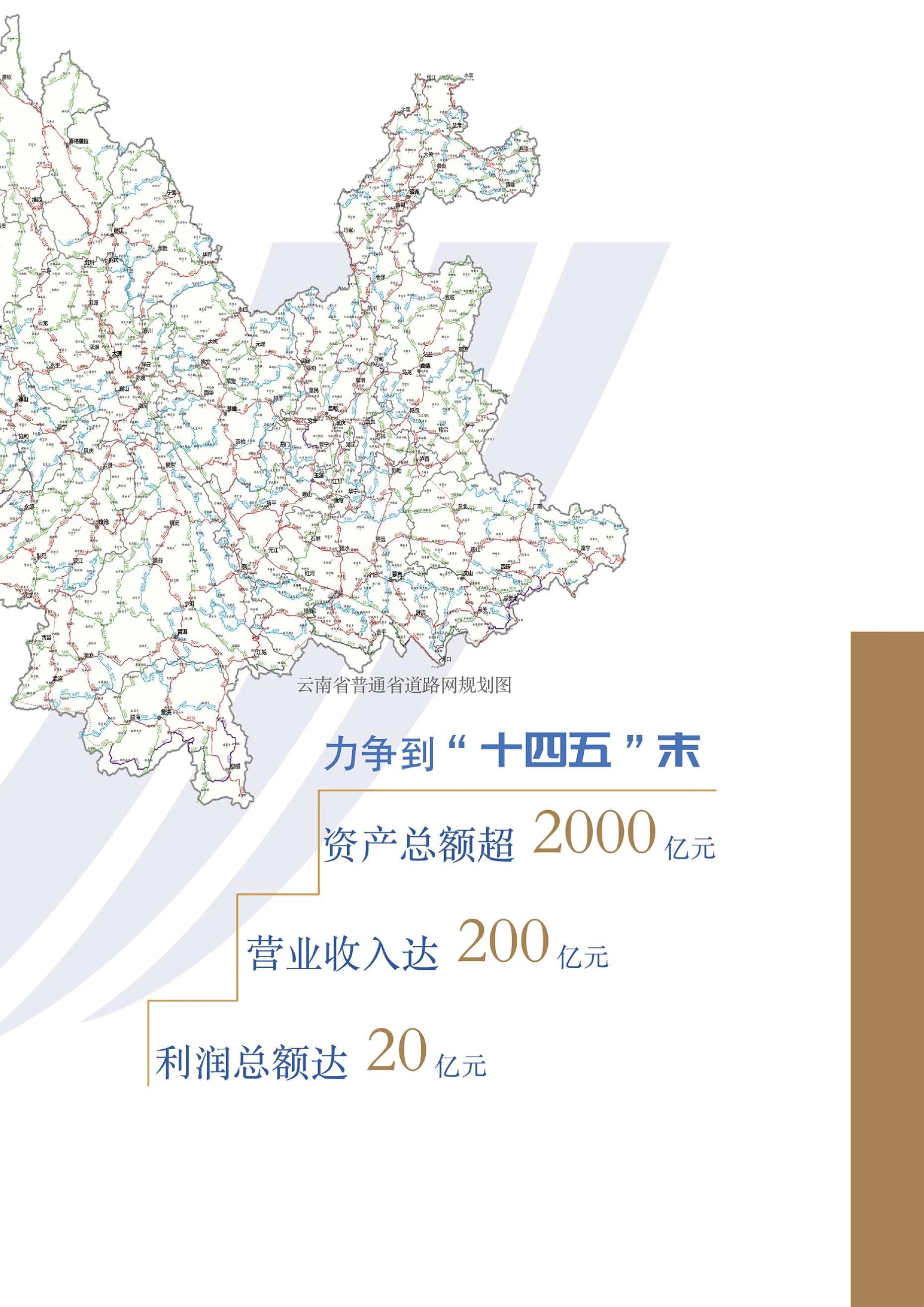 以“規(guī)模提升、集采集供、品類拓展”為發(fā)展思路,依托交通主業(yè)擴(kuò)大物資貿(mào)易業(yè)務(wù)規(guī)模;以“價值挖潛、品牌提升、延伸拓展”為發(fā)展核心,深挖路域資源全面提升運營管理水平;以“開放合作、創(chuàng)新發(fā)展、精品打造”為發(fā)展目標(biāo),聚焦優(yōu)勢資源持續(xù)深化對外合作;堅持“高起點、高質(zhì)量、高水平”發(fā)展要求,創(chuàng)新“交通產(chǎn)業(yè)+資源整合+資本嫁接”商業(yè)模式,著力構(gòu)建成為一體多元企業(yè)%,有多個項目獲獎。其中,昆玉高速公路獲2003年“中國建筑工程魯班獎”;硯平高速公路獲2006年度“國家優(yōu)質(zhì)工程銀質(zhì)獎”;安楚高速公路獲2007年度“國家優(yōu)質(zhì)工程銀質(zhì)獎”獎項。